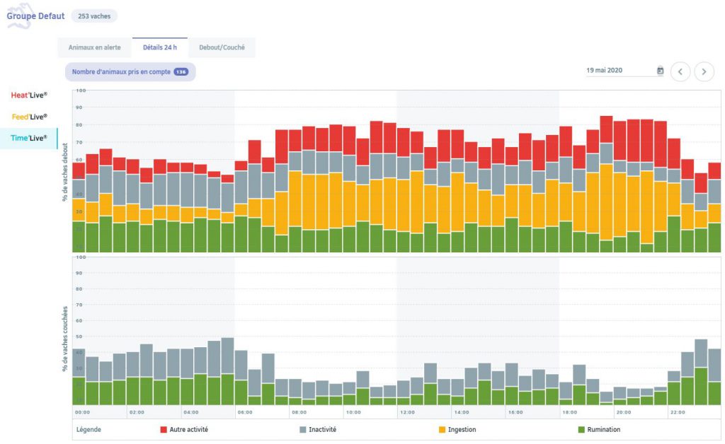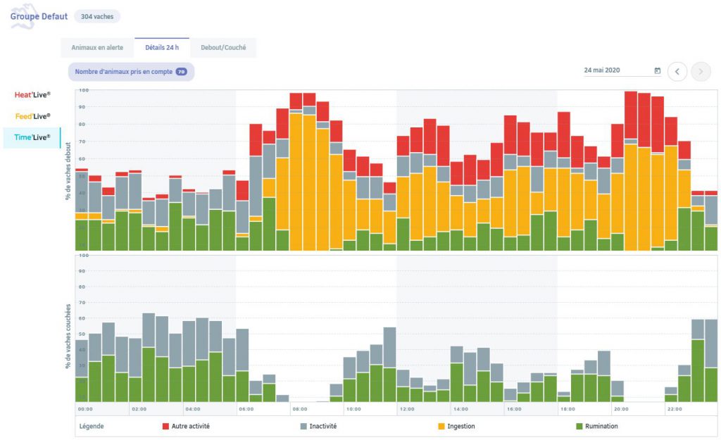 - le temps d’ingestion sur la journée : dans le time live, on s’aperçoit que les vaches n’ont pas accès à la nourriture 24h sur 24.