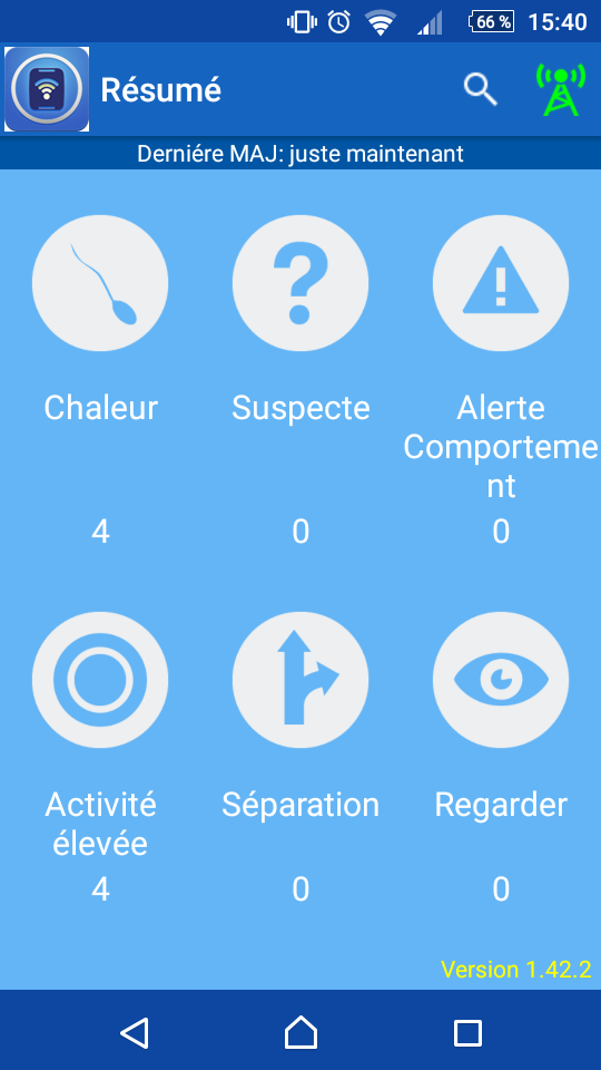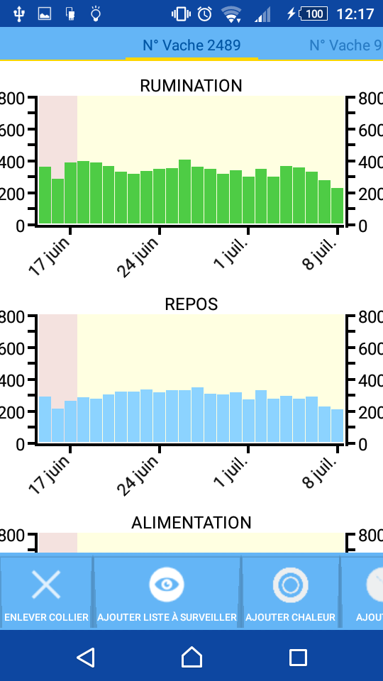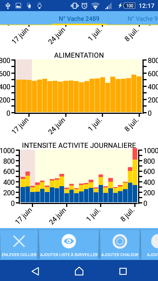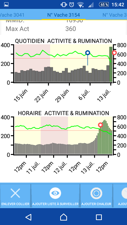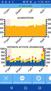 - Activité Elevée : se démarque des animaux détectés en chaleur en indiquant également les animaux gestants ou avec un nombre de jours de station trop faible.